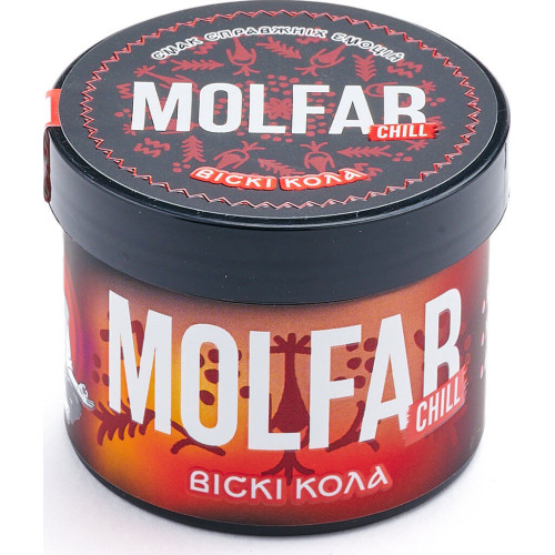 Табак для кальяна Molfar Chill Whiskey Cola 40 г — табак средней крепости для кальяна украинского бренда Molfar, созданный на основе качественных листьев Burley.